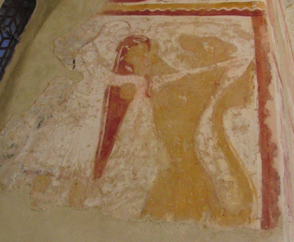 Der Reiter, von seinem Dreieckschild (von den Templiern benutzt) geschützt, stellt eine auf ihre Hinterpfoten aufgerichtete Raubkatze. (Der Ockerfarbe nach zu urteilen denke ich, dass dieses Tier das Böse symbolisiert.)
