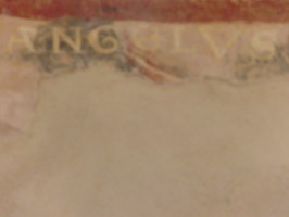 During renovation and transformation of the choir in the seventeenth century, the South wall window was enlarged to overcome the lack of light, consequently destroying the scene titled "ANGELUS". only the name remains above the window