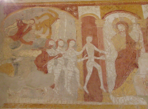 Christ welcomes the Righteous through the narrow gate, while the Damned (top left) are eaten by monsters. These nude figures represent the souls of the dead, compare this performance with that of the dancer immediately below!).